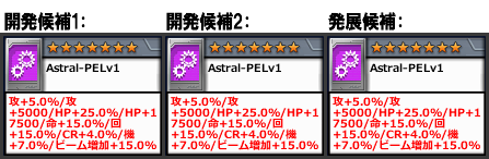 ※特別な強化パーツは全て同じ開発候補のため、開発候補3は出現しません。