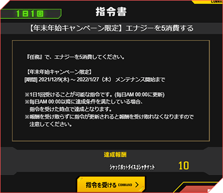 ・本キャンペーンに参加するには、ゲームへの登録と、チュートリアル「サイド7」のクリアが必要となります。
